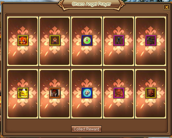 - You can get 10% off by clicking on the Pray 10x button, and get all the pet displays in the pop up window. Pray 10x to the Flame Lord, you will be guaranteed with a Legendary pet, meanwhile, Pray 10x to the Chaos Angel, you will be guaranteed with a Epic pet.
