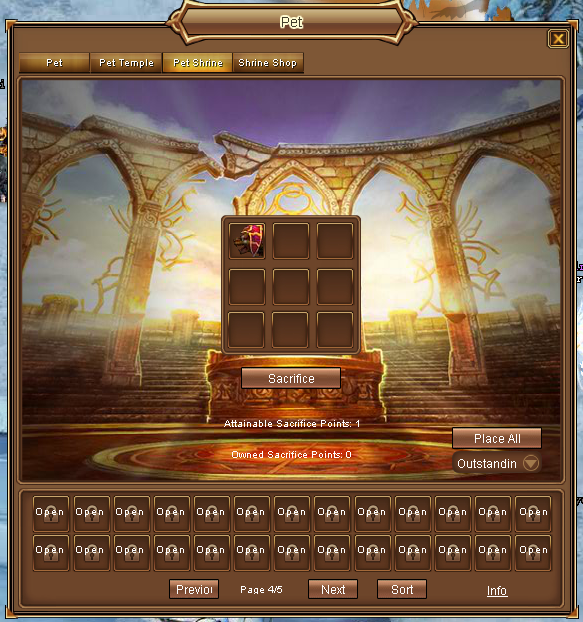 - Sacrifice Point not only can be used to pray for pets, it also can be used in Shrine Shop to buy pets.