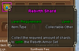 Crystal Saga II is totally new for me. Everything's changed... And there is this item named rebirth shard. It is for the level 35 Rebirth armor sets.
