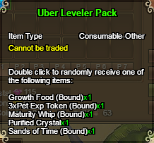 I forgot I was going to grab a screenshot of the pack contents when I leveled earlier. If anyone remembers, can someone grab one that for us please?