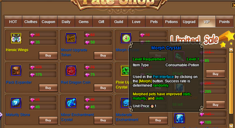So I spent 3.5k crystals on the pet temple to obtain a demon! Great thats what i wanted.. Then i brought another 5k crystals to morph my demon into a super demon! WOWWWWWWW how you going to change morph into a different feature. and the way the morph description is written advises the pet will become stronger in my eyes im thinking super demon. BUT NO IT TURNT INTO A USELESS ANGEL which I didnt want. VERY MISSLEADING AND A BAD CUSTOMER JOURNEY!!