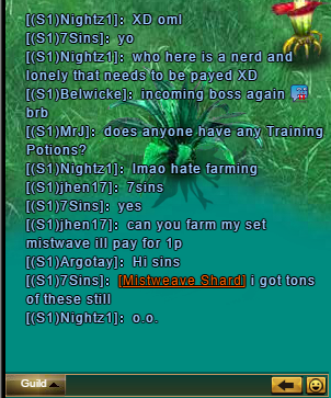 It was your guild and you knew what was going on. Shujinko was never kicked out of the guild.Originally posted by Fierycore View Post<-- Corey I've been on the level rankings pretty much the entire time, I'm sorry you are jealous or something that I was one of the first to reach lvl 80 but really you have no proof and there is nothing even suggesting that I abused it, my character has things that you can see were farmed, and any duplicating I've done was to test possible other glitches (such as the broken pet quality upgrade glitch with MC) without upgrading my character and those items have been tossed since before maintainance.Last edited by LighTree; 08-25-2016, 01:52 AM.CS I - (S103)Lugh