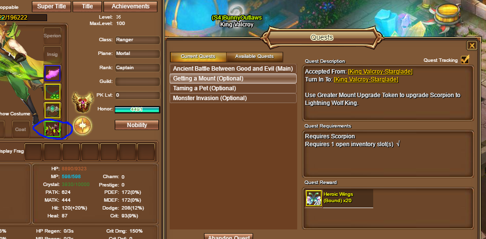As described in the Quest Description, you will need morph your Scorpion into a Lightning Wolf King using Greater Mount Upgrade Tokens to fulfill the quest.