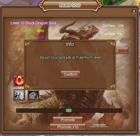 I'm not sure if this is a bug or intended, but there is a max beast soul of level 10 black dragon. However, there are two other skills in beast soul that are showing. These cannot be achieved so I am wondering whether this is a bug or not.