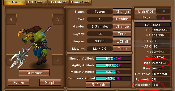 The Tauren is a Defensive pet. All of the defensive pets have a damage absorption rate of 25%. The Tauren's rate is 15%, so is it meant to be an offensive pet which is labeled wrong, or is it a defensive pet with the wrong absorption rate?
