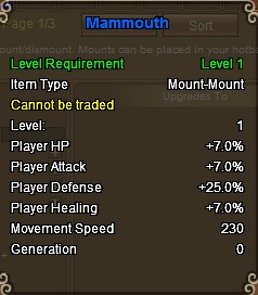 Mammouth is a 2-person battle mount that cannot be transformed.Originally posted by R28079283 View PostWhy do you people continue to release mounts and refuse to tell us stats, whether or not they are transformable, and if they are battle mounts...this is simple basic stuff...come on.
