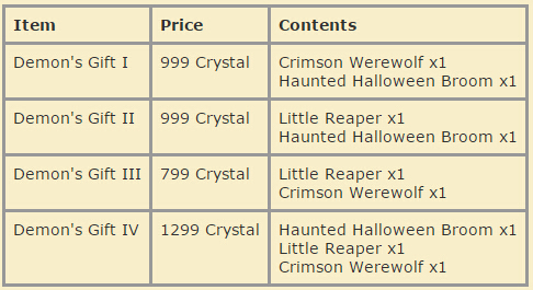 | 2,000 | Soul Shard x3, Tricky Halloween Pack x10 |