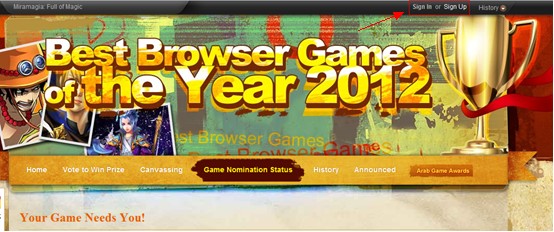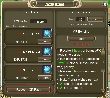 Crystal Saga has received 2 nominations for the 2012 BBGs, and we'd like players to go and vote for Crystal Saga! For players taking the time to visit the site, registering, and voting for Crystal Saga, you'll receive a code to redeem in Crystal Saga by going to the Daily Bonus panel and clicking the Redeem Gift Pack button (See below).