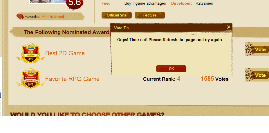 Kinda retarded that yall are only giving out 1000 rewards when you have waayy more than 1000 people that play your game. I would have voted everyday like I can but I wont vote anymore.