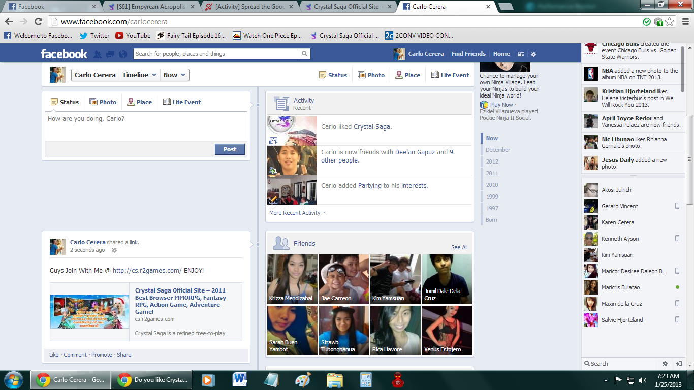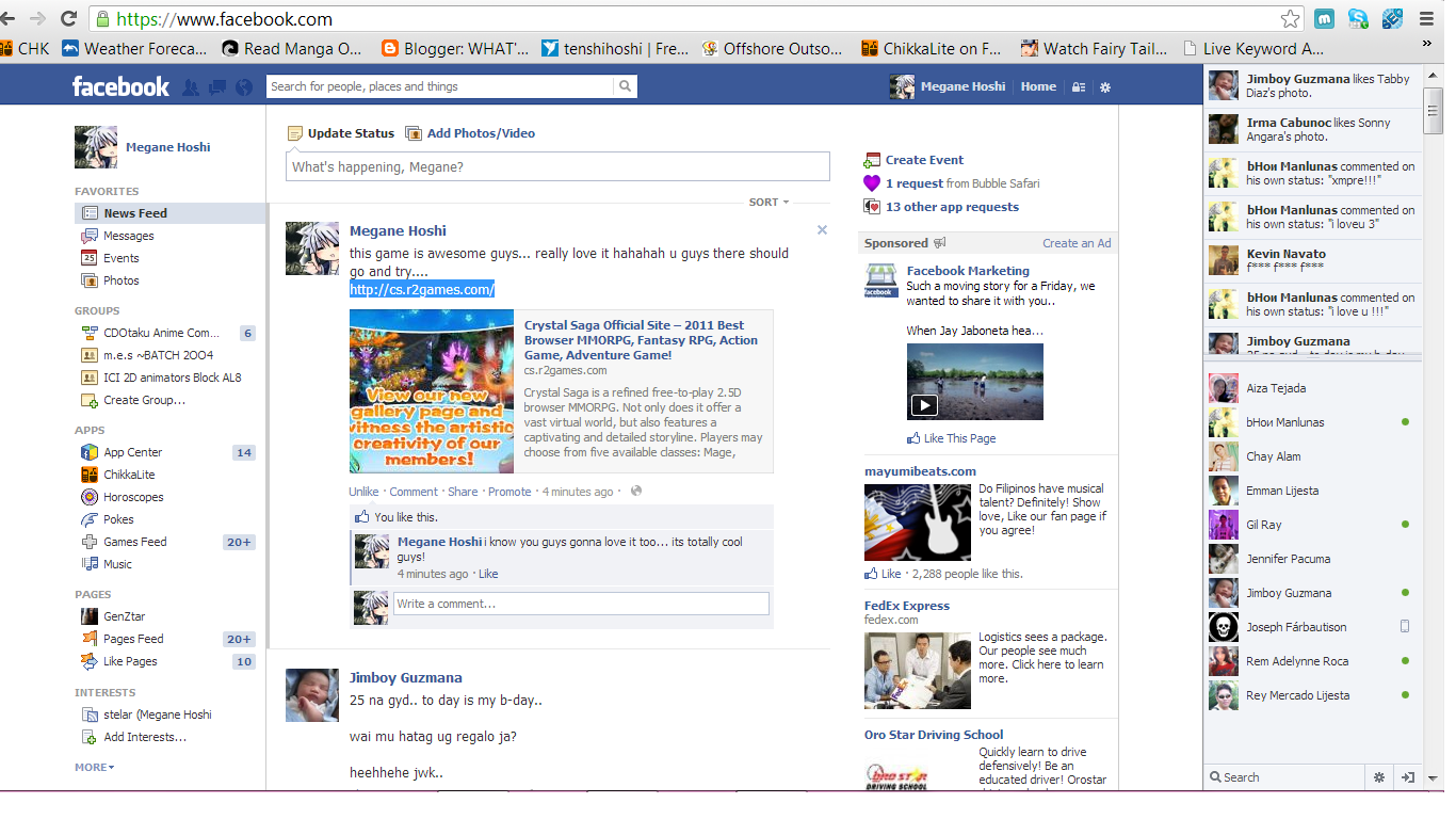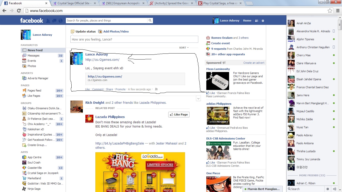 Description: Throw up a post on your Facebook, Twitter, or Google Plus and/or change the status on your AIM/MSN/Skype letting your friends know you're having a good time playing Crystal Saga. Reply to this post with the following to participate in this event: