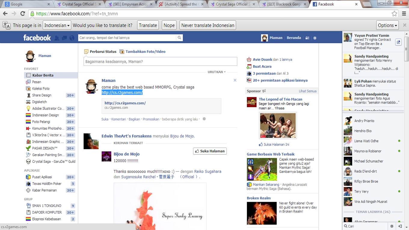 All posts **MUST** contain the Crystal Saga URL! http://cs.r2games.com