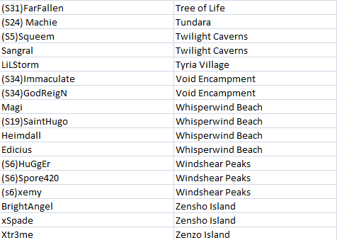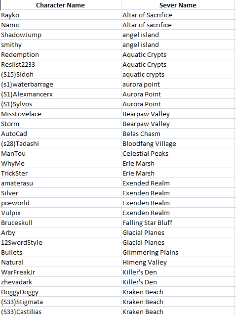 Personally, I'd like to think everyone who subscribes is a winner with the new VIP System. However, we had a number of players who helped out with their suggestions for the new System. To those that helped, we've gifted them all a free month of the VIP for one of their characters. The winning characters (and their server) is listed below. If you are on the list, congrats! Enjoy your free month. The reward has already been sent out, so you should have at this time.