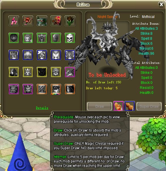 4. Attempt: Limit to 5 per mob per day for Draw; each mob permits a different no. of Draw; no more Draw when reaching the upper limit.
