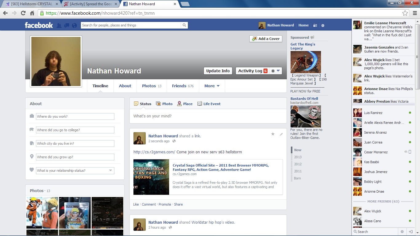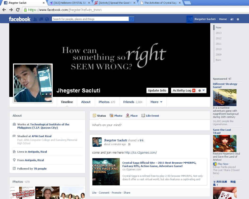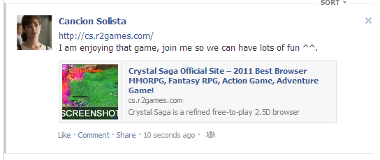 Description: Throw up a post on your Facebook, Twitter, or Google Plus and/or change the status on your AIM/MSN/Skype letting your friends know you're having a good time playing Crystal Saga. Reply to this post with the following to participate in this event: