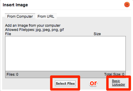 2. Select a file from your computer. If you get an error, try the Basic Uploader.