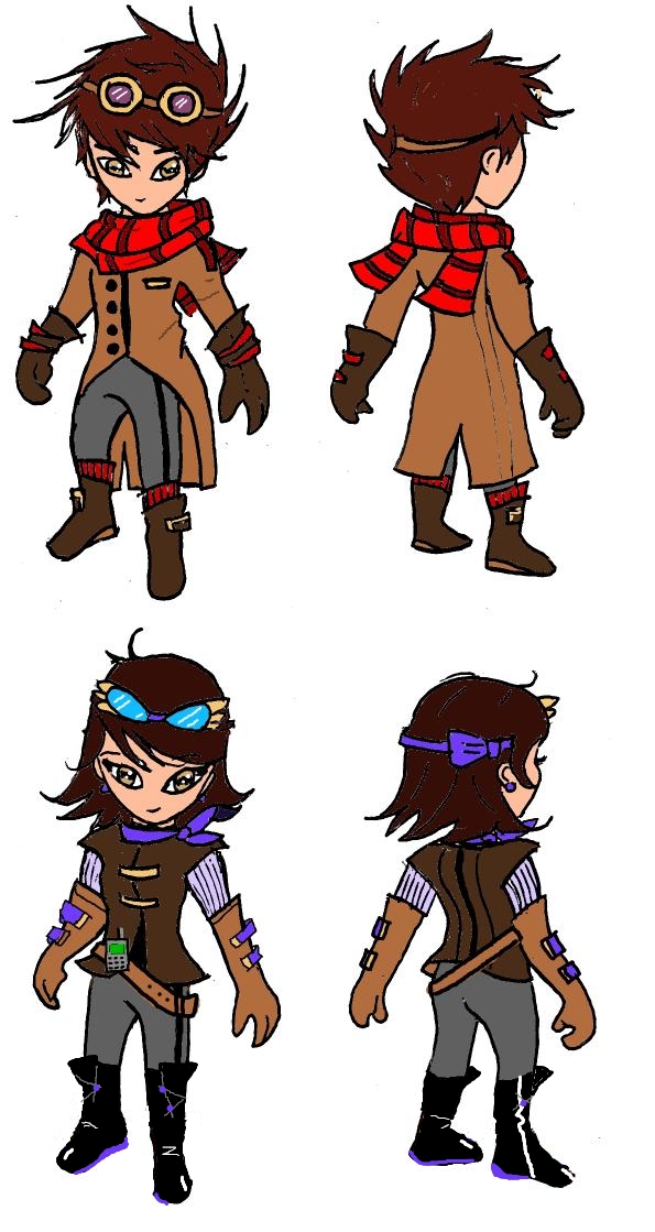 I wanted my outfits to look natural, something a human would wear. They could be called Flying Ace Googles, Steampunk Winged Googles, Violet Flying Gear and Red Baron Coat.
