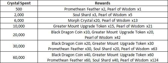 Description: During this promotion, use your Crystal to purchase items in the Item Shop and receive a number of unique rewards! Rewards are based on total Crystal spent during this promotion – NOT total Crystal purchased. Once you reach the requirements below, visit the Quartermaster in Starglade to receive your extra reward.