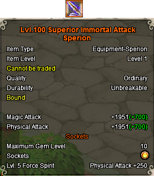 @venomeh: sperion must reach level 20 before you can do the first morph. as for removing gems...no clue if its possible. i got up to level 3 gem drops from spernal ruins but i've seen shops with level 5 gems too. drops in these dungeons are rather generous it seems...i just hope soul prints can be dropped too or else it'll be back to doing ampario surveys for me...just like i did with maxing my goddess buffs. o.o