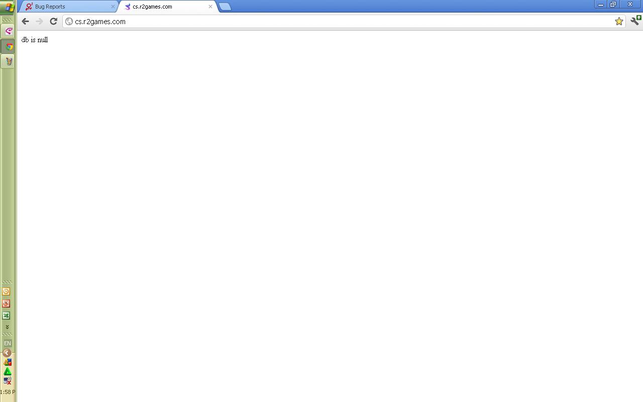 This just happened to me on Psychodelica, game froze up and tried to refresh only to get a white blank page that said "db is null", I tried going back to the r2 mainpage only to get the same thing, I even tried googling it and trying all the other links. I restarted my comp thinking it might be my computer lmao. Ya, fixing this would be awesome xD