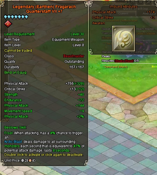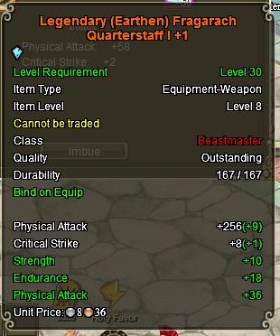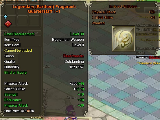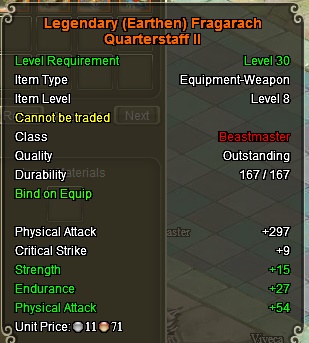 The item that I am going to demonstrate with is the Earthen Fragarach Weapon for a Beastmaster.