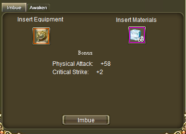 To Imbue, make sure that the item you wish to Imbue is in your inventory.