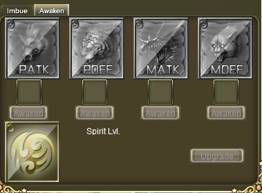 After you Awaken an item you can then upgrade the Spirit that you have Awoken by clicking on the upgrade button.