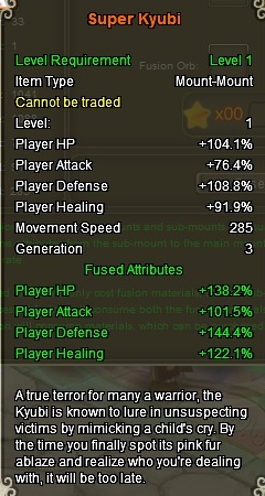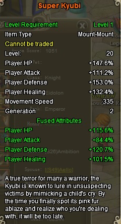3. I used secondary kyubis that were Lv20 but I DID NOT give it mount food like you did, and don't lie because everyone knows you used mount food on the secondary pet.