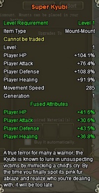 *Only Secondary mount matters, not sure if green stats on main mount matter as looks like I lost all stats of a kyuubi
