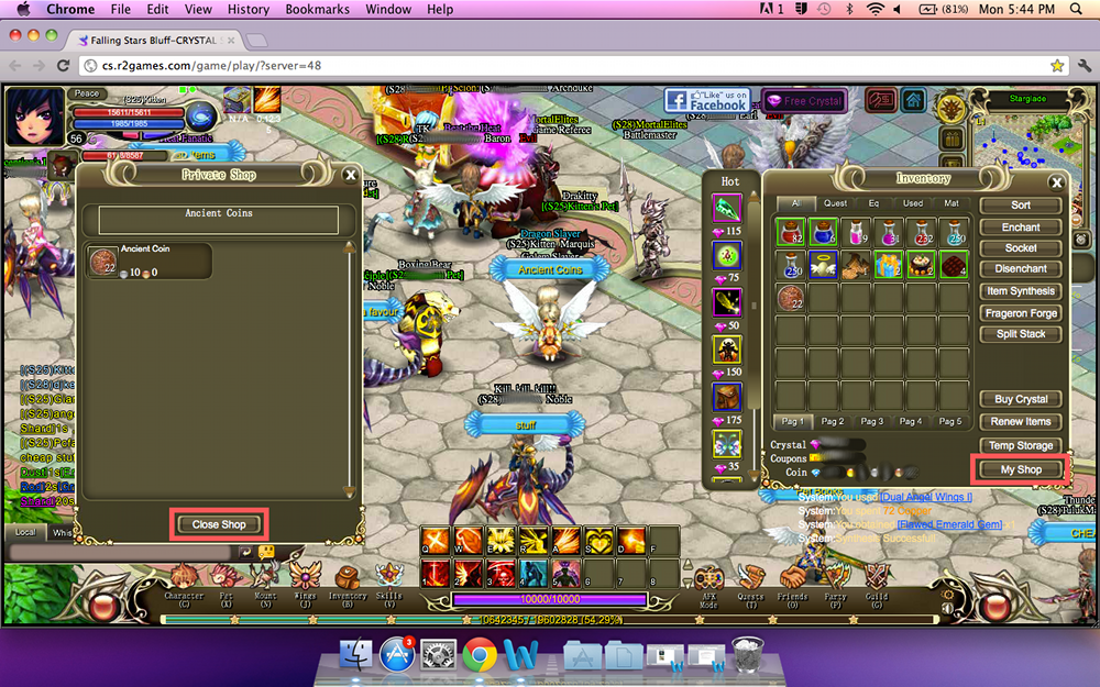 After that all you have to do is wait for people to come over and buy your items! If no one is buying them try lowering your prices or for equips maybe it isn’t good enough quality (purple outstanding equipment is best). When you feel like closing your shop all you have to do is click 'Close Shop' at the bottom of the panel.
