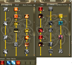Blood: Blood Beam 1 Life Drain 1 Grave Pact 1 Improved Blood Beam 5 from left tree