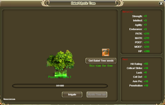 - Original Water is used to irrigate your mystic tree slowly increasing your Babel Mystic Tree's level.