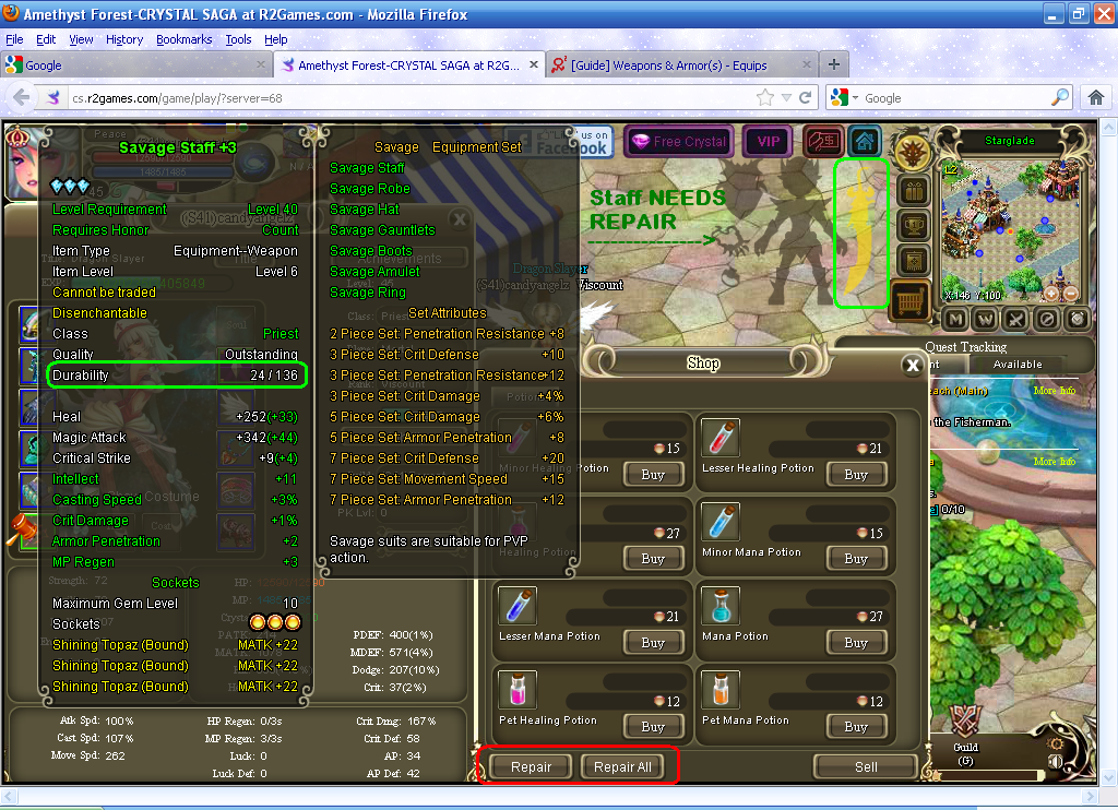 My most useful thing to do when an equip needs a repair is repair it at a shop. Hammers are all very helpful because with one hammer only, you can repair ALL of your equips, EXCEPT, it also LOWERS the durability. Repairing at a shop is most ideal.