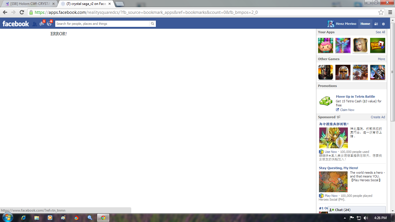 i have a solution: first open the website...http://cs.r2games.com/ second click ymail in existing account ...... if you dont have ymail create new if you done just sign-up it will open..... you can now play crystal