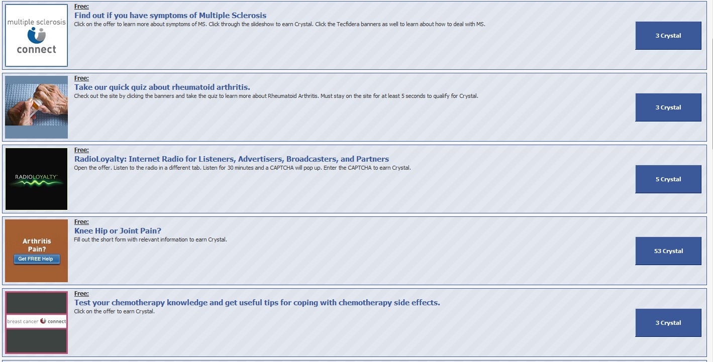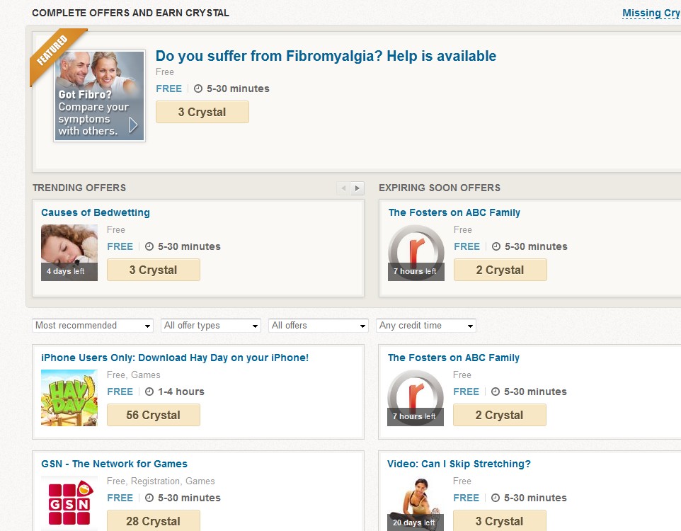 can anyone help me i want free crystal plsss is there anyother way for free crystal and i do that free crystal think in top right cornor its says downa file get 2 crystal but it does not comee plss help how to do a survey i beg for free crystal