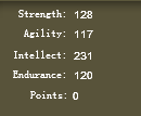 Attribute points: Mages should be pure intellect (that means you put all your points on this. Me well I made the mistake of equal stats shareing the points around each time...i have beun to correct it but it still looks like this