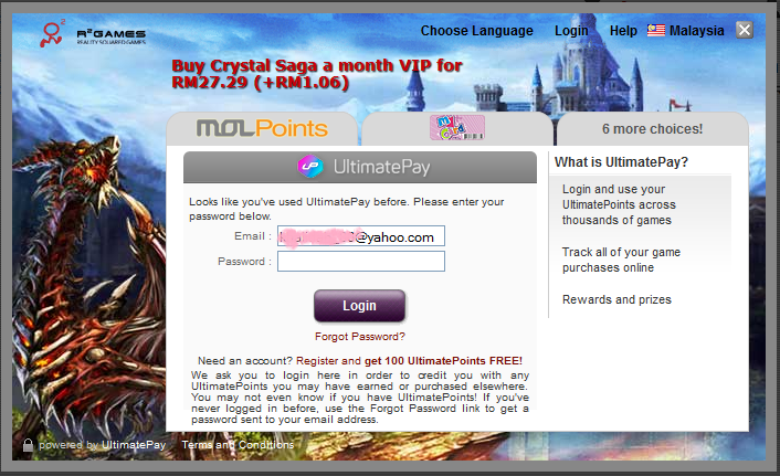 I have a problem here. I use Ultimate Game Card before to buy crystal, now i want to buy VIP using MOL Points but the transaction window keep asking me to logon my UltimatePay account. Do i need to file a ticket for this problem?