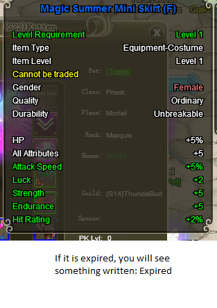 I am sure some new player at this game didn't know how to check this I remember I used an expired outfit and someone said: