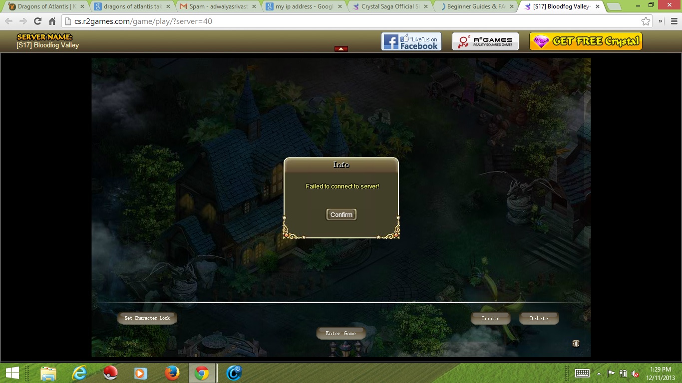 Doesn't matter how many times you refresh, clear history, clear chache and cookies, close all the tabs, restart your computer or turn on and off your computer, the problem's still going to be there. :\ I'm having the exact same problem and if I do manage to log on I need to immediately go to L5 so I don't lag major or crash.Crystal Saga