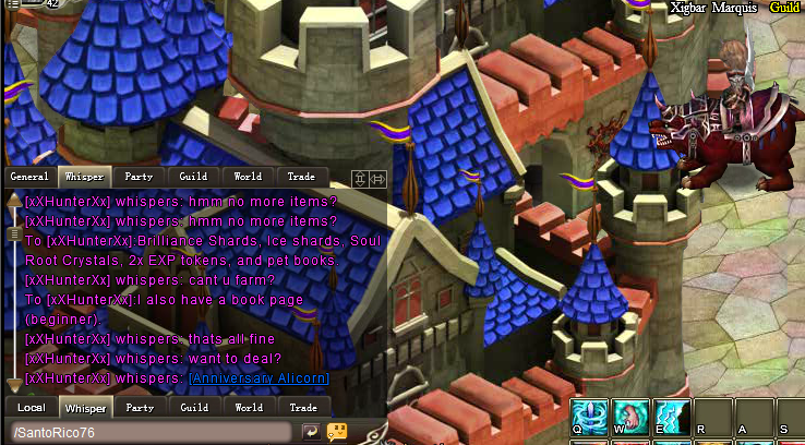 I have been scammed in this game for about 3D from two people in the game for the new Alicorn mount. The first one was XMarksDaSpot, which will be mentioned in the screenshot of the chat with the other scammer xXHunterXx. My name is Xigbar of the Belas Chasm. I also have many witnesses in this server that can testify for me that these two are scammers. Here is the chat of the conversation I had with the scammer xXHunterXx....