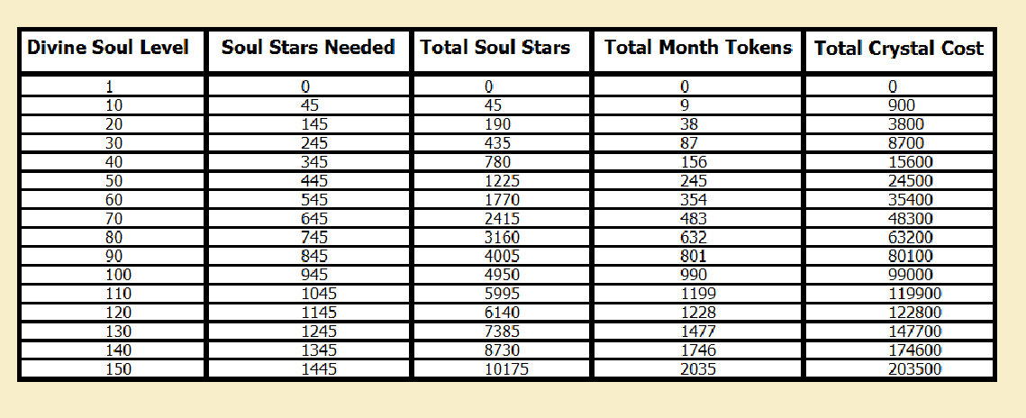 I probably should have added that this is based on the assumption that the amount of Soul Stars needed goes up by 1 per level, hopefully it's all accurate but I'm sure I'll find out soon if it is not. >.>