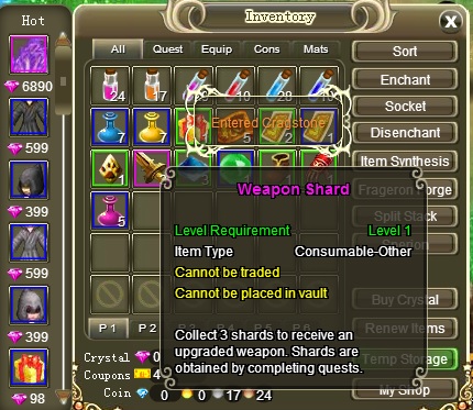 2.) At the beginning of the game, through main quests you get shards to make a better weapon. The 3 shards you get do NOT work when you click them to make a weapon on beastmaster.