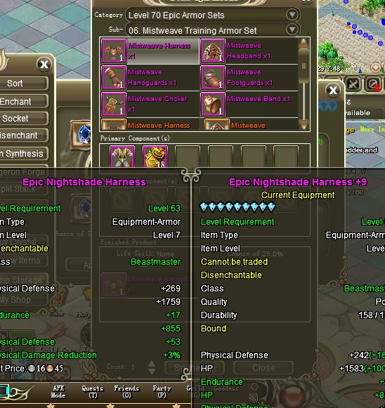 So when I went to make my beastmaster some mistweave gear, found a new bug. Mistweave requires nightshade gear to make now? The other classes do not.