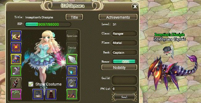 As long as it functions I attached a copy of my character Sheet, to show the toon, and to show the costume and the mount on the toon's sheet.. as well as the picture of me on the mount with only my wings and my hair showing...