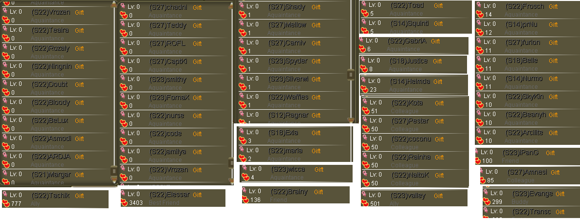 B: Broken Realm (S1)Rima, (S4)FULLMETAL, (S4) and (S5)Who, Crystal Saga (S50)Opossum, and (S50)Aido, Wartunes (S79)Yukki, Castlot, Monkey King Online, Knight's Fable, LOA, Shadowbound, HOTB