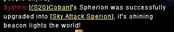 System message calls it "Spherion" instead of "Sperion". Same goes for the message when you max out the lvl, but I haven't seen anyone do that recently to get a screenshot showing that the typo exists there too.