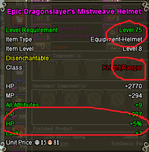 As you can see this ranger gear has hp % boost in green
