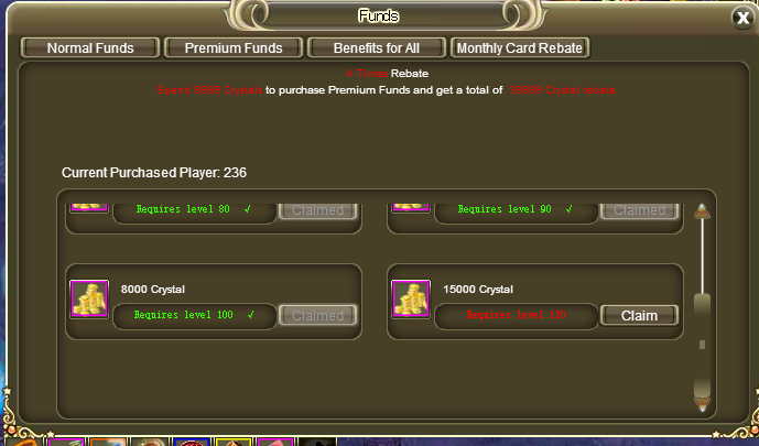 level 100 normal and premium funds yet, but as i open my funds tab, it says that it was already "claimed". I hope r2 will really do something about this.