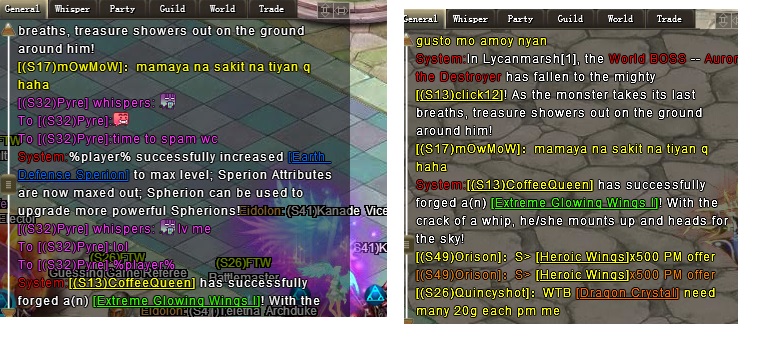 i maxed my blue defense sperion to lv50 and in world chat is didnt display but in my personal general window it did but it said %player%