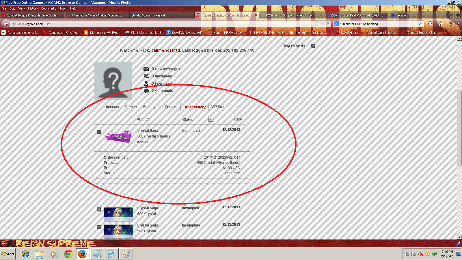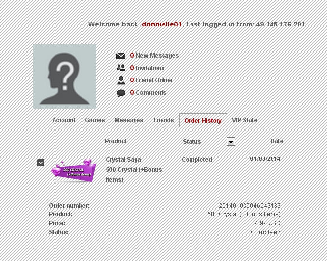 After that, I bought 500 crystals, after I checked out from the pages, it's loading take a long time, then I checked in the payment history, the crystal was received, but when I tried to log in to the, the crystals is not increased.