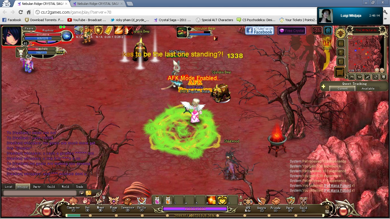 This is how it started, I was grinding ( for crystal event ) then he asked if i can do redemption for him, i was willing too i mean he's the #1 right now so why not? :O. i joined the party then i dc/ed on the way i messaged him with my alt saying that i dc/ed he said i'm leaving.. so i was like your impatient dude, chill ima be on in like 10 seconds. i got on i went to his spot(after joining the party again) then i went to get my scroll.. unfortunately.. (undying Phoenix) i was like great. then i went to his spot stood there for like 10 minutes.. then he summoned it i wasn't even ready i quickly spammed heals made my attack healing. then we died.. obviously i knew we couldn't duo a undying phoenix.. so i got back to town he was like ''why your an idiot i'm leaving'' so i was like dude why are you mad.. it was like a 5 minute commotion.. so i went back to grinding and that happened lol sorry for the bad screen-shots ima upload new ones